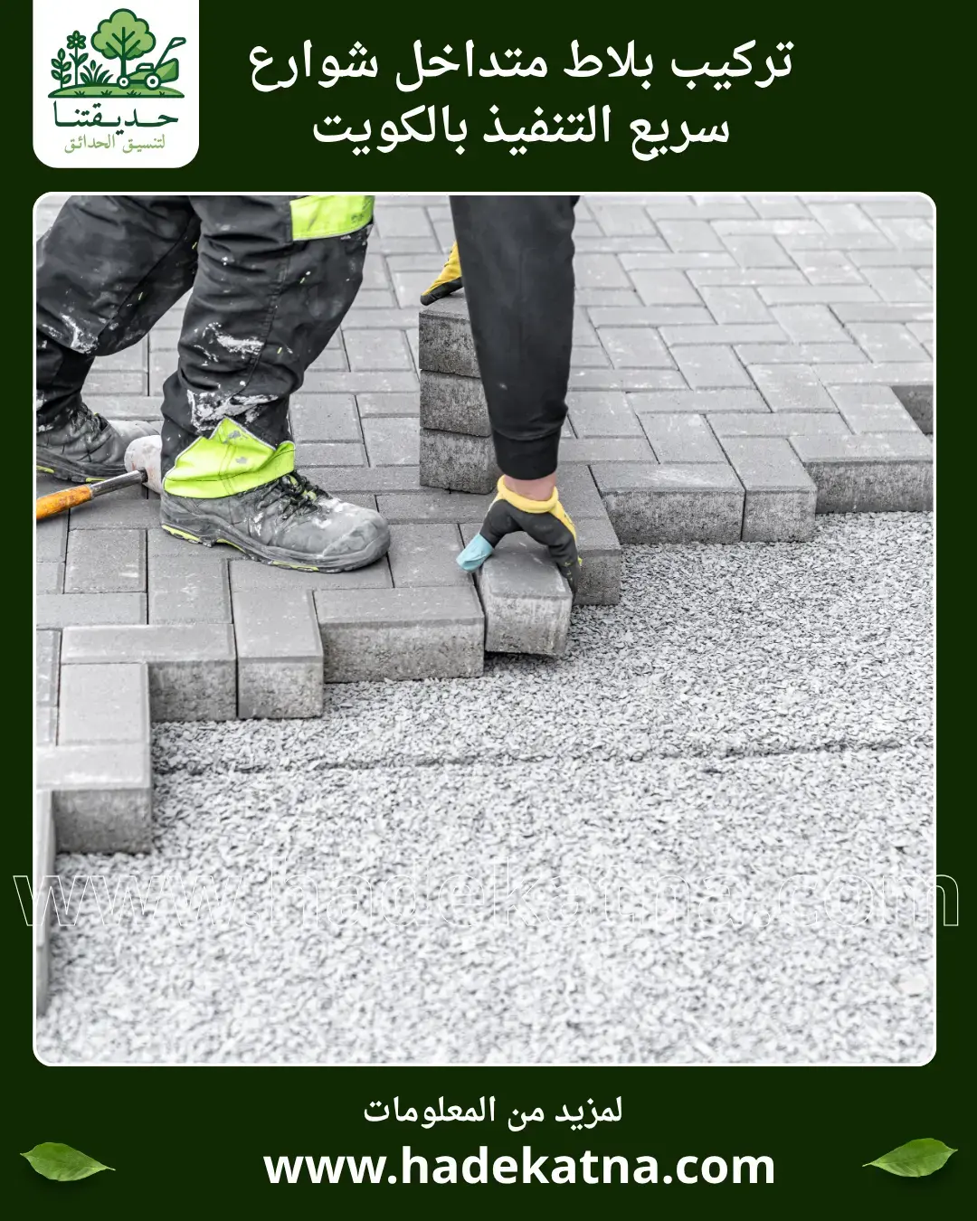 بهذا الأسلوب أصبحت خدمة التركيب السريع للبلاط المتداخل خيارًا استراتيجيًا في كثير من مشاريع التطوير والتجميل الحضري في الكويت.