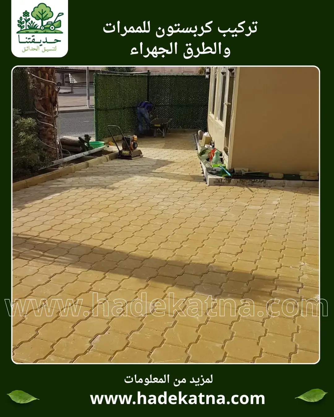 يعتبر تركيب الكربستون والبلاط المتداخل في الحدائق من أبرز عناصر تنسيق المساحات الخارجية في محافظة الجهراء، حيث يضيف لمسة جمالية عملية تُكمل مظهر الحديقة وتساعد على تنظيمها.
